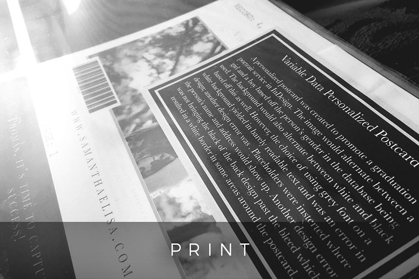 My print portfolio consists of print projects that helped me understand the foundation of print and how it has a wide array of uses in our everyday lives.
